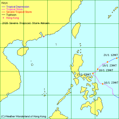 (The above tracking map is produced by the Weather Wonderland of Hong Kong.) |