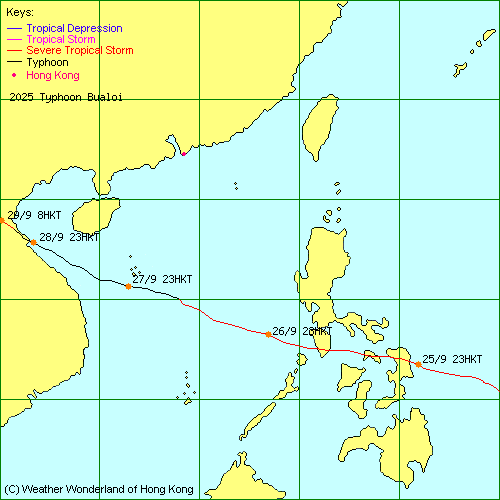 | 2025-26W | Bualoi 博羅依 | L.P. 低氣壓 | HKO 香港天文台 | 路徑資料 | 路徑圖 |