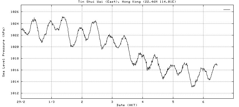 Past Week Sea Level Pressure Variation Graph: 過去一星期海平面氣壓走勢圖: